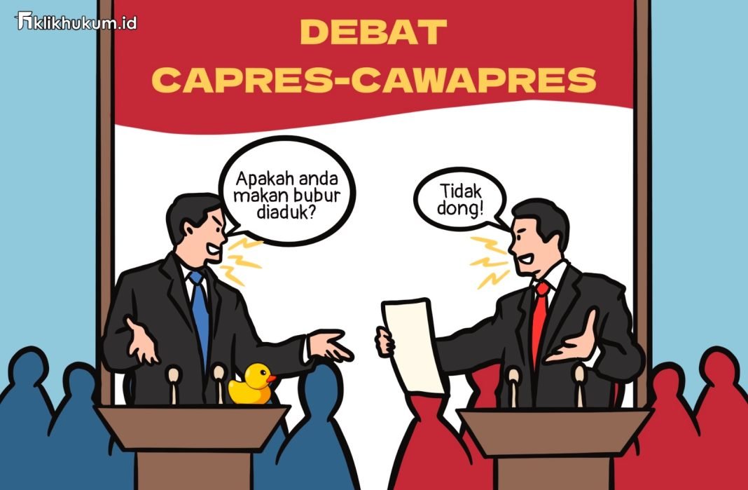 Gengs, ngerasa nggak sih, kalau debat capres cawapres di pemilu sebelumnya itu ngebosenin dan nggak menarik. Kayak kaku dan cuma formalitas doang. Bahkan kita sebagai pemilih nggak ada kesempatan buat membandingkan kandidat mana yang lebih baik. Teruntuk KPU, yuk bisa yuk, debat capres cawapres pemilu 2024 dibikin konsep yang out of the box, biar nggak garing.